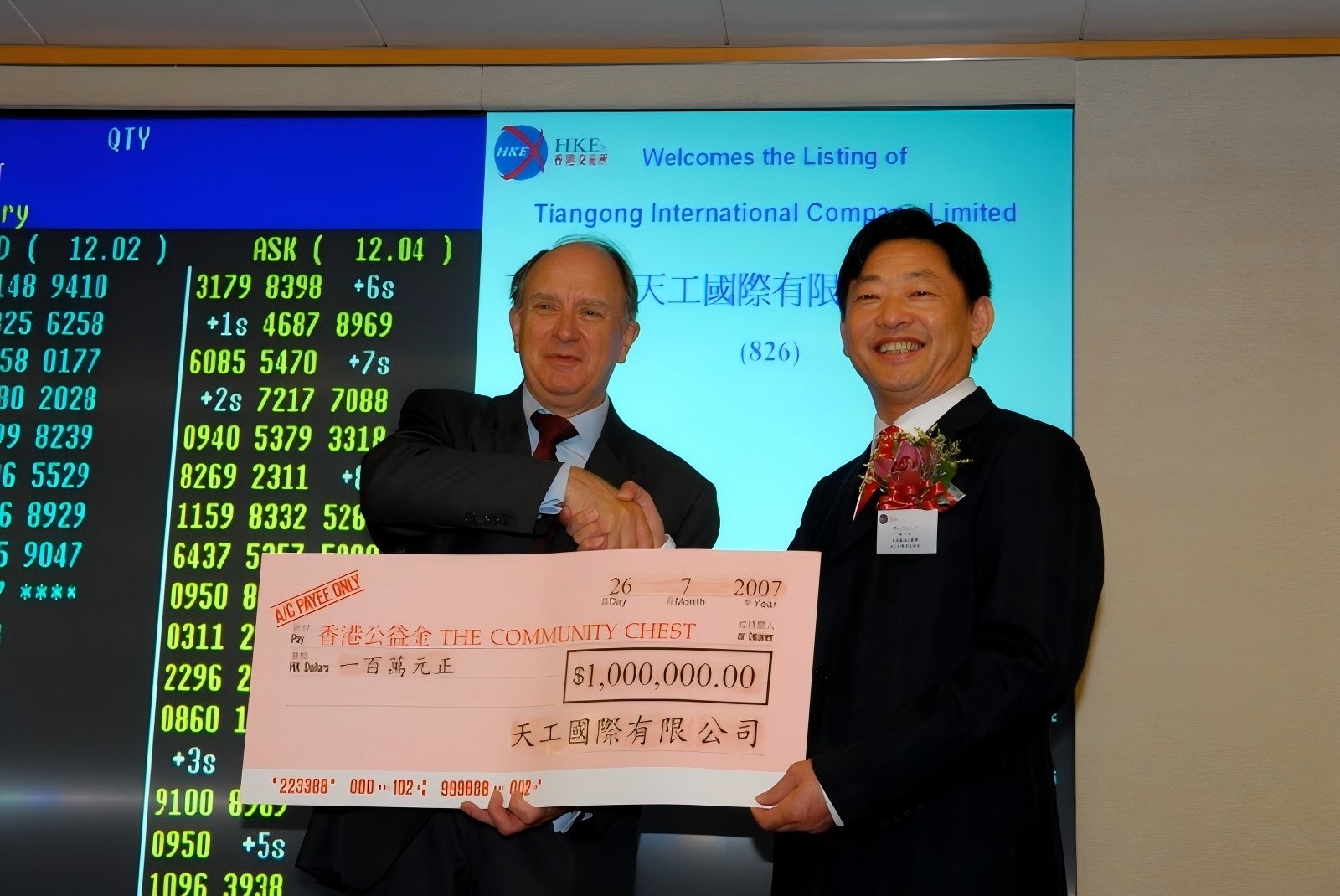 Home>>社會(huì)責(zé)任>天工國(guó)際董事局主席朱小坤向香港公益金捐贈(zèng)100萬