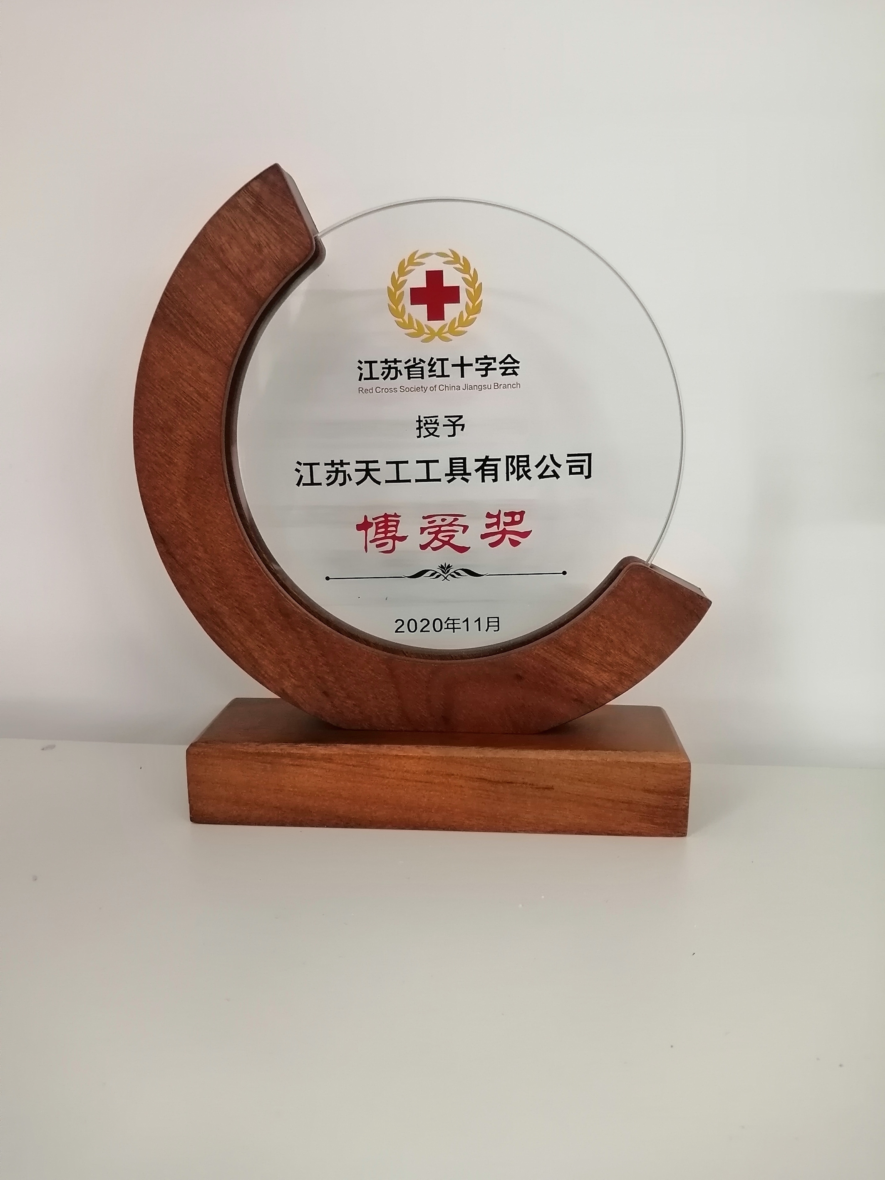 江蘇省紅十字會(huì)授予天工 “江蘇省紅十字博愛獎(jiǎng)”